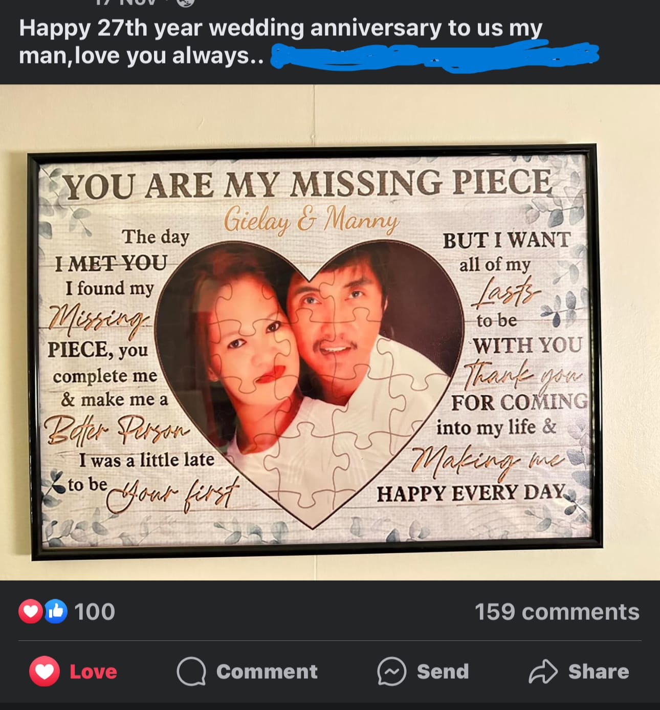 My mom and I purchased this as her gift for my dad for their 27th wedding anniversary. They both love it! it also arrived perfect timing. Thank you!